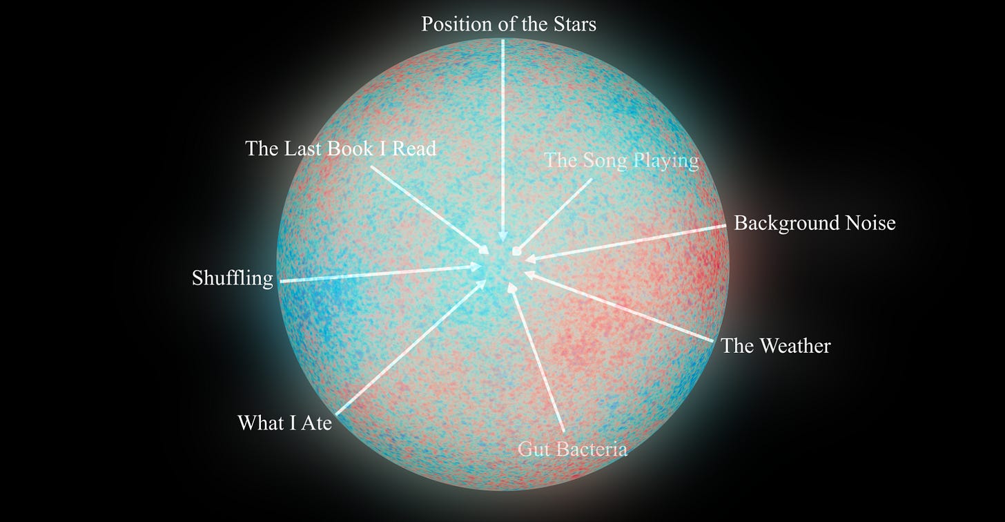 In the second case, we regard the deck as an open system. Now, we consider everything that affects the shuffling. We consider the conversation between me and whoever the reading is for. We have to account for every biochemical interaction in both of us and everyone nearby. We have to factor in the background noise in the surrounding area. We consider the patterns of the wind and the positions of the stars and how their light strikes our retinae and the photosensitive cells in our skin. All of these factors will nudge what takes place, no matter how gently.